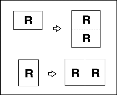 - Sao chụp nhân đôi (Double Copies) : Bản gốc sẽ được nhân đôi trên bản sao có khổ giấy gấp đôi