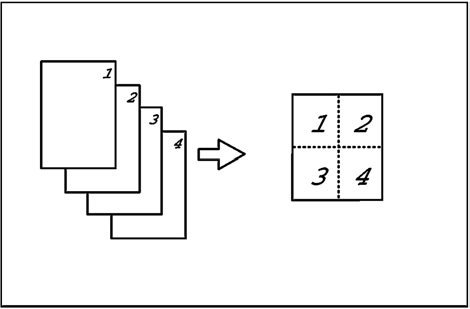 - 4 bản gốc vào 1 bản sao 2 mặt (4 trang vào 1 trang 2 mặt)